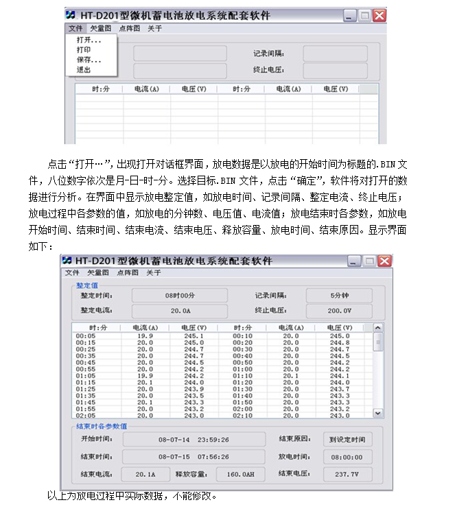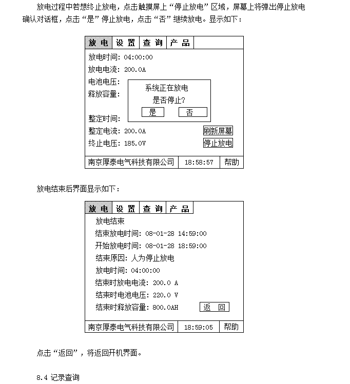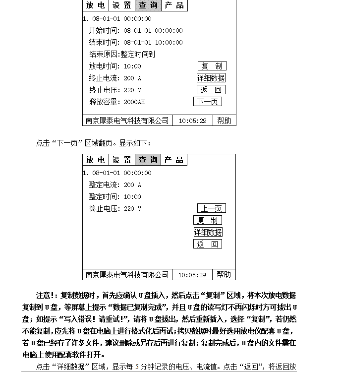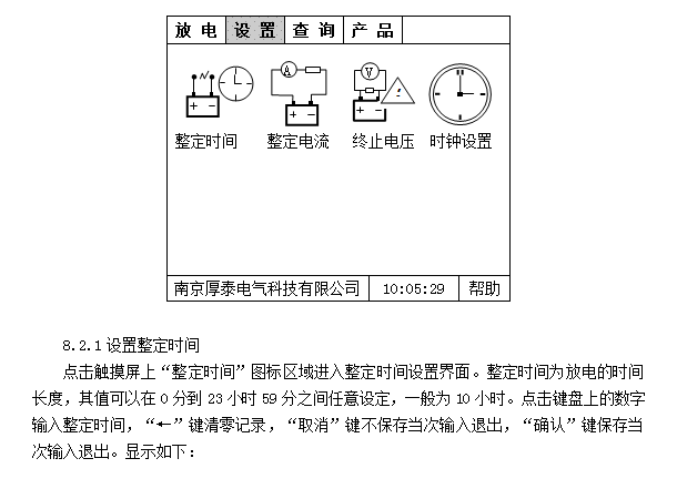 5.4 實(shí)時(shí)顯示放電電流、電池電壓、放電時(shí)間、釋放容量、實(shí)時(shí)時(shí)鐘、整定值信息。